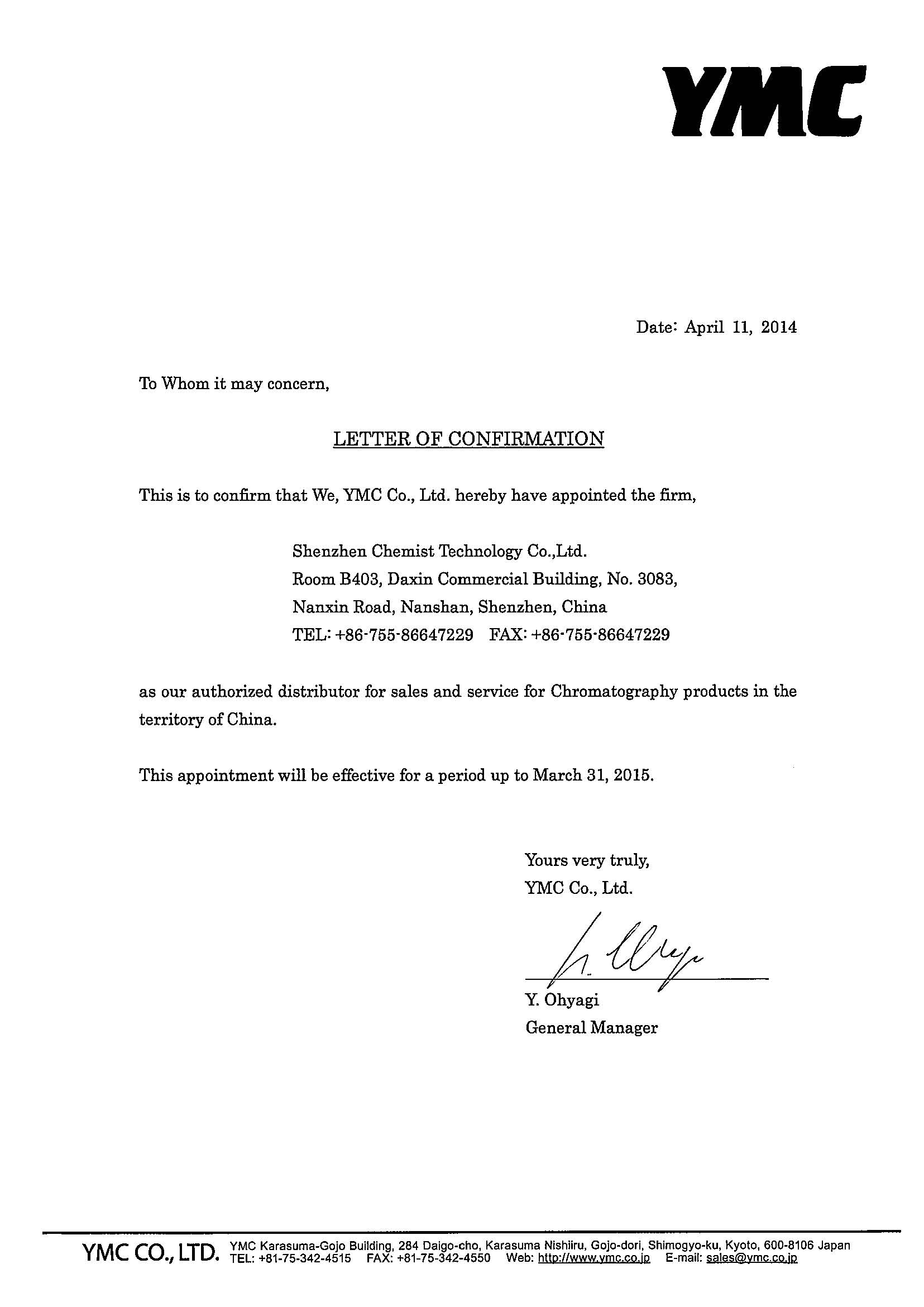 深圳凱米斯科技有限公司作為YMC中國區(qū)域正式授權(quán)代理商,攜手YMC將更多更好的色譜分離、純化產(chǎn)品及技術(shù)服務(wù)帶給國內(nèi)尊貴的客戶。