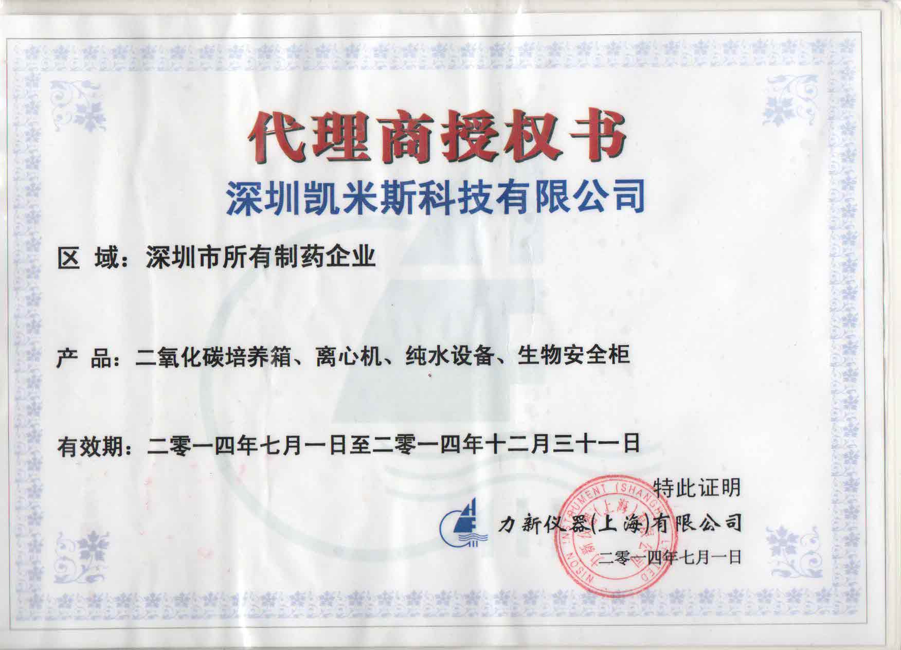 ??? 我公司自2014年7月1日與力新儀器(上海)有限公司簽訂合作協議,成為"力康"科學儀器在深圳制藥行業的簽約代理商。