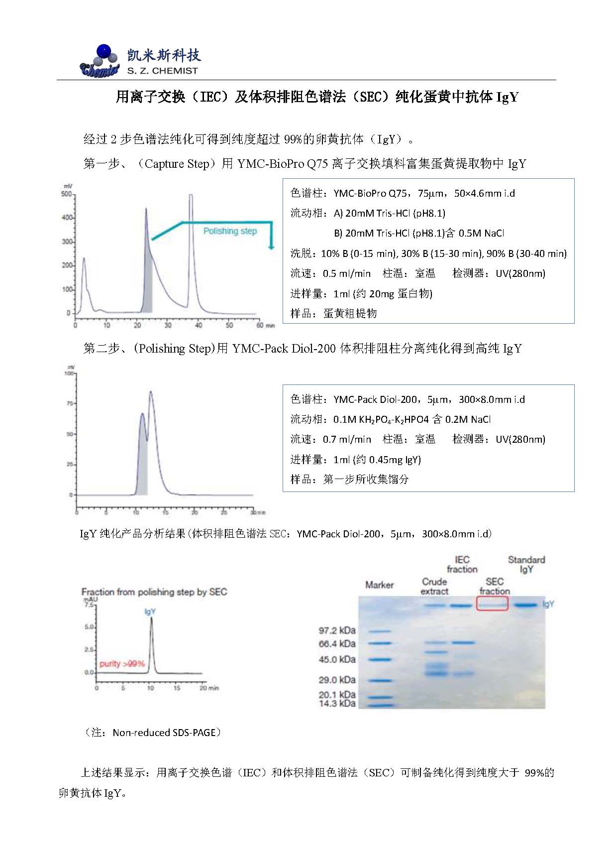 將蛋黃提取物通過兩步色譜分離純化可得到純度超過99%的抗體IgY:
